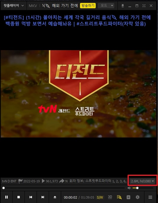 얼마간의 로딩과정 후 팟플레이어에서 유튜브가 재생되는 것을 확인하실 수 있습니다.