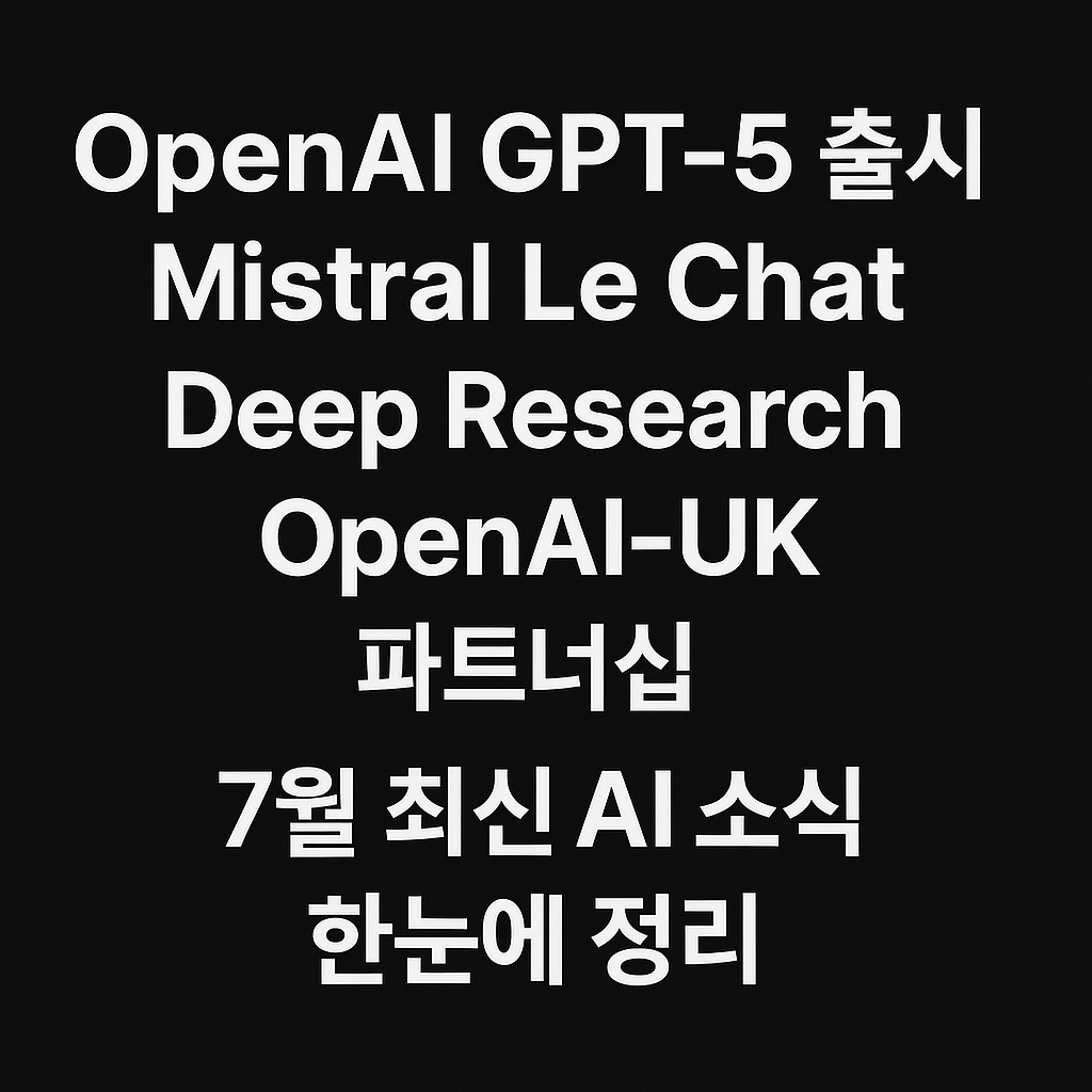 🧠 OpenAI GPT‑5 출시 예정, Mistral Le Chat Deep Research, OpenAI‑UK 파트너십 … 7월 최신 AI 소식 한눈에 정리